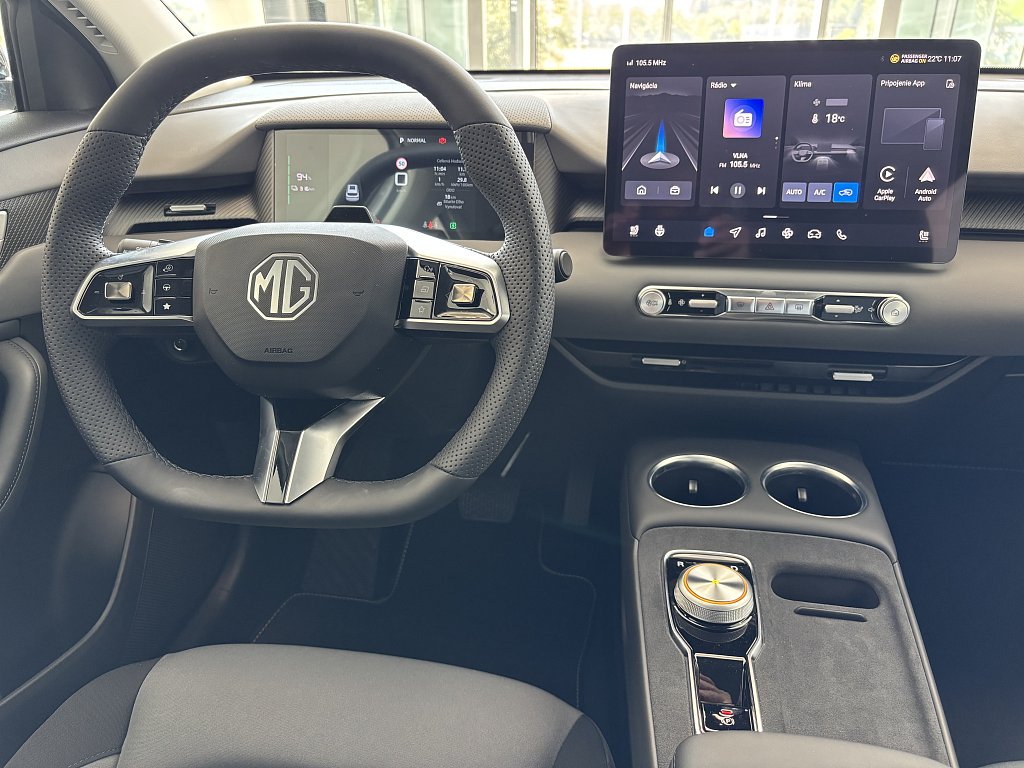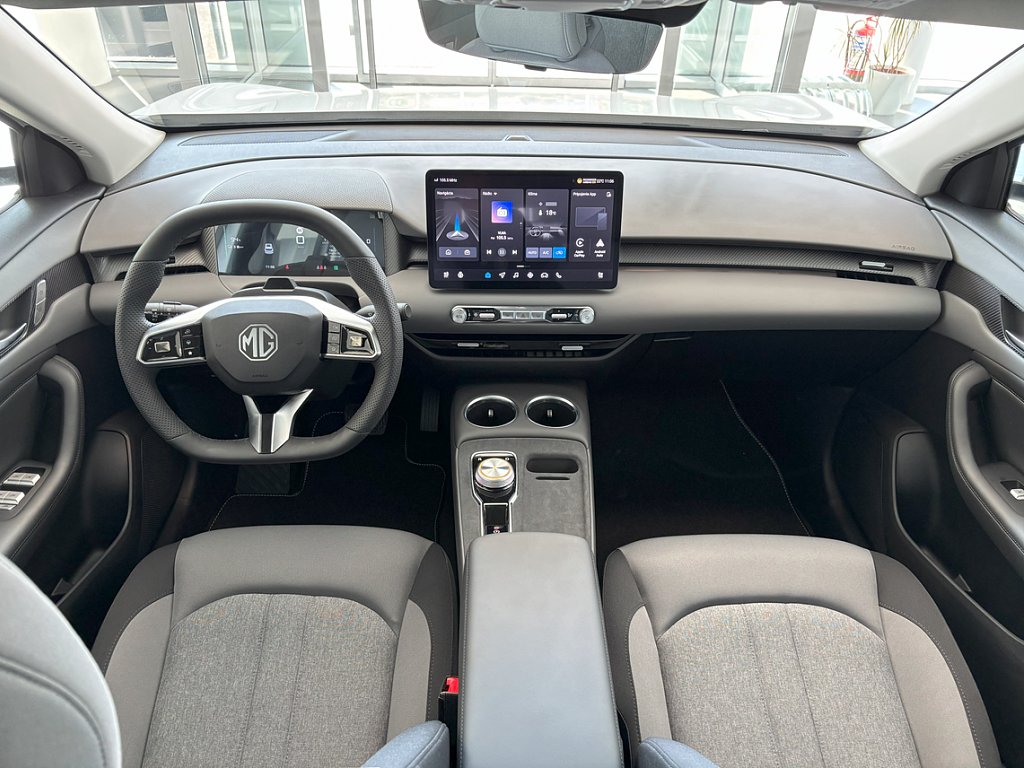 Systém varovania pred opustením jazdného pruhu (LDW), Aktívny systém na udržanie jazdného pruhu (LKA), Asistent pre jazdu v dopravnej kolóne (TJA), Automatické diaľkové svetlá (IHC), Adaptivný tempomat (ACC), Sledovanie mŕtveho uhla (BSD), Núdzový brzdový asistent (EBA), Systém monitorovania tlaku v pneumatikách (TPMS), 3bodový bezpečnostný pás na predných sedadlách s predpínačom a obmedzovačom záťaže (x2), 3bodový bezpečnostný pás na zadných sedadlách (x3) s predpínačom a obmedzovačom záťaže (x2), Predné airbagy pre vodiča a spolujazdca, Systém E-CALL, Alarm a systém proti krádeži, Bočné airbagy pre vodica a spolujazdca, ABS (protiblokovací systém)& EBD(elektronické rozdelenie brzdnej sily), Bočné hlavové airbagy pre lavú a pravú stranu, Deaktivácia predného a bocného airbagu spolujazdca, MG Pilot nastaviteľný profil, Núdzové udržiavanie v jazdnom pruhu (ELK), Systém monitorovania únavy vodiča (DMS), Centrálny airbag medzi prednými sedadlami, Elektronická parkovacia brzda (vrátane funkcie Autohold), Zadný strešný spojler, Zadné parkovacie senzory, Tretie zadné brzdové LED svetlo, Zadné hmlové svetlo, LED svetlomety, Aktívny systém mriežky chladiča (AGS), Elektricky nastaviteľné, vyhrievané, čierne vonkajšie spätné zrkadlá, Sedadlo vodiča manuálne nastaviteľné v 6 smeroch, Sedadlo spolujazdca manuálne nastaviteľné v 4 smeroch, Operadlo zadných sedadiel delené v pomere 60:40, Satelitná navigácia, Zadná parkovacia kamera s dynamickými navádzacími líniami, Prepojenie s aplikáciou iSmart, Bezdrôtové pripojenie Apple CarPlay™ / Android Auto™, 12,8" HD dotyková obrazovka infotainmentu, Digitálny 10,25" displej vodiča, 4 USB porty (3x vpredu (2x Typ C + 1x Typ A na spätnom zrkadle) + 1x vzadu(1x Typ C)), 17"zliatinové disky kolies Vector Style s aerodynamickým krytom kolies, Manuálne prepínateľné vnútorné spätné zrkadlo, Predohrev batérie, 5 jazdných režimov (Normálny, Športový, Komfortný, Sneh, Vlastný), Automatická klimatizácia s výduchom ventilácie pre zadné sedadlá na stredovej konzole, Dvojfarebné šedé látkové čalúnenie, 4 reproduktory