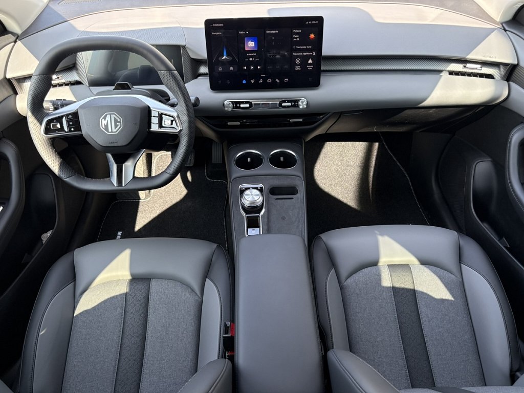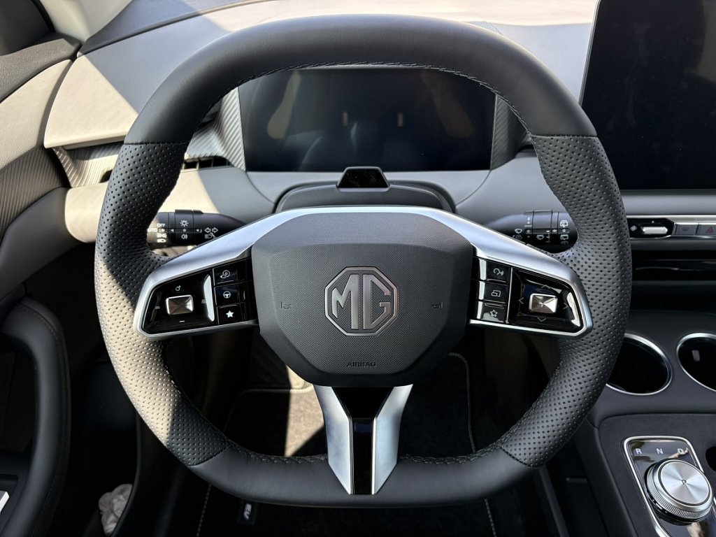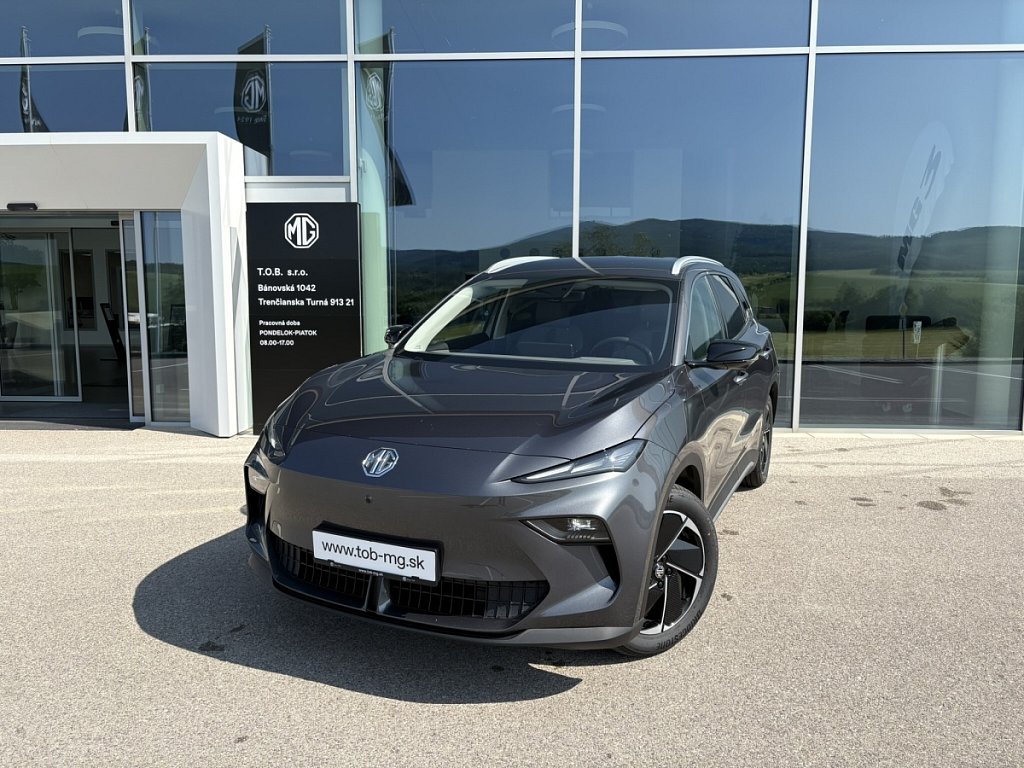 Núdzové udržiavanie v jazdnom pruhu (ELK), Systém varovania pred opustením jazdného pruhu (LDW), Inteligentný obmedzovač rýchlosti (SAS), Asistent pre jazdu v dopravnej kolóne (TJA), Automatické diaľkové svetlá (IHC), Bezdrôtové nabíjanie mobilného telefónu, 6 reproduktorov, Satelitná navigácia, Bezdrôtové pripojenie Apple CarPlay™ / Android Auto™, Plánovač cesty EV, 12,8" HD dotyková obrazovka infotainmentu, Digitálny 10,25" displej vodiča, 4 USB porty (3x vpredu (2x Typ C + 1x Typ A na spätnom zrkadle) + 1x vzadu(1x Typ C)), Príjem digitálneho rozhlasového vysielania (DAB), Systém sledovania pozornosti vodiča (DMS), Centrálny airbag medzi prednými sedadlami, Elektronická parkovacia brzda (vrátane funkcie Autohold), Systém aktívneho riadenia stability (ESP), Núdzový brzdový asistent (EBA), Akustické upozornenie na nezapnutý bezpečnostný pás vodiča, Akustické upozornenie na nezapnutý bezpečnostný pás spolujazdca, Varovanie pred prichádzajúcimi vozidlami pri otváraní dverí (DOW), Predné airbagy pre vodiča a spolujazdca, Senzor tlaku v pneumatikách TPMS (priamy), Bočné airbagy pre vodica a spolujazdca, Bočně závesné airbagy pre vodica a spolujazdca, ABS (protiblokovací systém)& EBD(elektronické rozdelenie brzdnej sily), Bočné hlavové airbagy pre lavú a pravú stranu, Deaktivácia predného a bocného airbagu spolujazdca, 18" zliatinové disky kolies Rotor Style s aerodynamickým krytom kolies, Možnosť miery rekuperácie elektrickej energie (KERS, 4 úrovne), Možnosť využitia vozidla ako záložného zdroja energie (V2L), 360° panoramatická parkovacia kamera, Zadný strešný spojler, Zadné parkovacie senzory, Elektricky nastaviteľné, elektricky sklopné, vyhrievané, čierne vonkajšie spätné zrkadlá, Aktívny systém mriežky chladiča (AGS), Výškovo a pozdĺžne nastaviteľný volant, Slnečná clona u vodiča a spolujazdca, Bluetooth kľúč pre mobilné telefóny, Manuálne prepínateľné vnútorné spätné zrkadlo, Predohrev batérie, Koženný volant, Elektrické ovládanie dverí batožinového priestoru, 5 jazdných režimov (Normálny, Športový, Komfortný, Sneh, Vlastný), Zadné svetlá na čítanie, Jednopedálové ovládanie zrýchľovania a spomaľovania vozidla, Prepojenie s aplikáciou iSmart, Automatická klimatizácia s výduchom ventilácie pre zadné sedadlá na stredovej konzole, Dažďový senzor, Elektrické ovládanie predných a zadných okien, okno vodiča s funkciou AUTO a ochranou proti privretiu, Automatická klimatizácia, Vyhrievaný volant, Dvojfarebné čalúnenie v sivej koži s čalúneným stredom, Zadná stredová lakťová opierka, Sedadlo vodiča s manuálne nastaviteľnou bedrovou opierkou, Sedadlo vodiča elektricky nastaviteľné v 6 smeroch, Sedadlo spolujazdca manuálne nastaviteľné v 4 smeroch, Operadlo zadných sedadiel delené v pomere 60:40, Tretie zadné brzdové LED svetlo, Zadné hmlové svetlo, Full LED Svetlomety, Systém automatického núdzového brzdenia (AEB), Aktívny systém na udržanie jazdného pruhu (LKA), Adaptívny tempomat (ACC) s obmedzovačom rýchlosti, MG Pilot nastaviteľný profil, Sledovanie mŕtveho uhla (BSD), Alarm a systém proti krádeži
